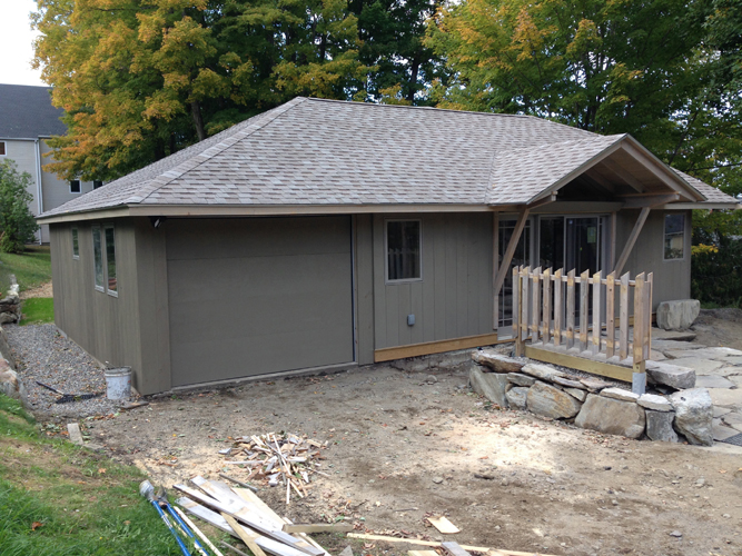 Before & After: Create hip roof / reconfigure entry as a central element to improve interior flow. | |